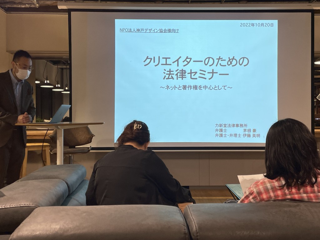 力新堂法律事務所の茅根先生、伊藤先生をお招きし、クリエータの課題である「著作権」などにまつわる知識を深めました。